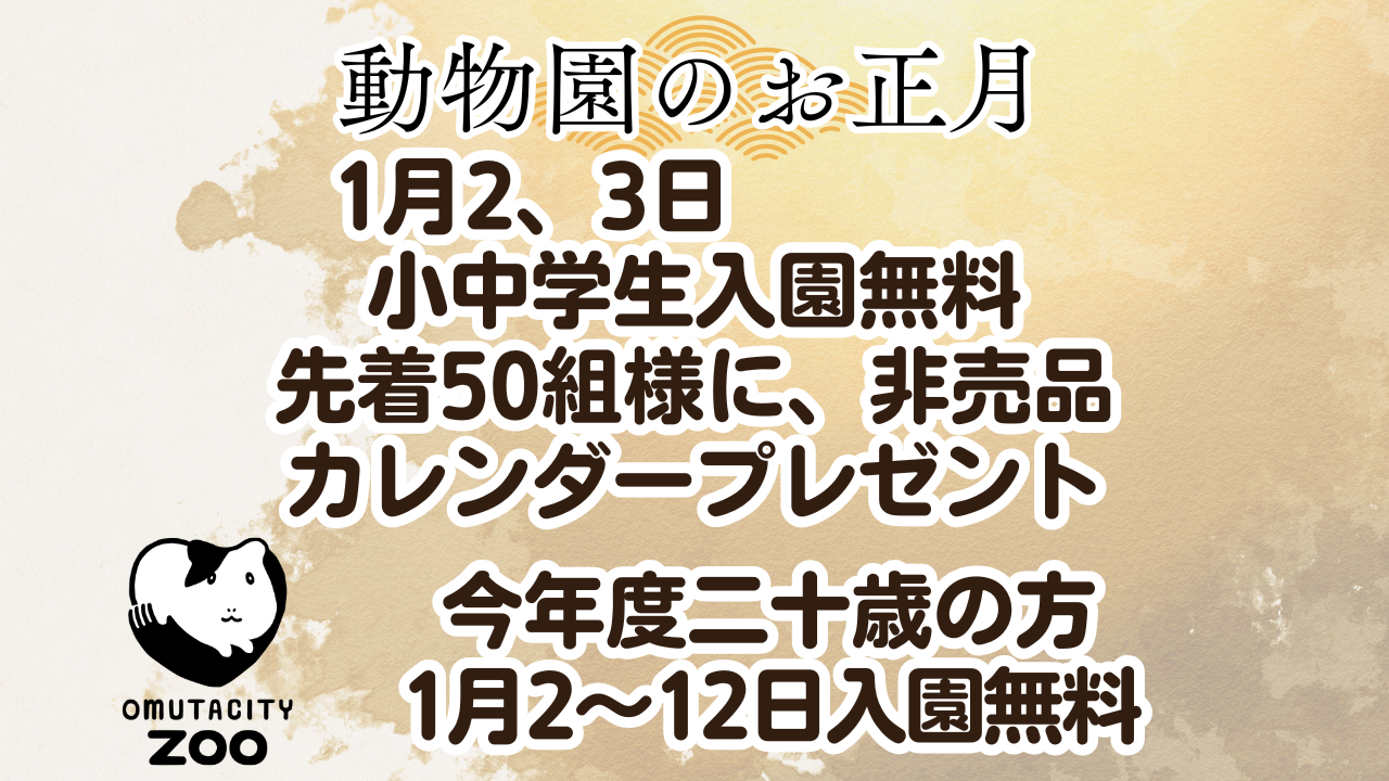 大牟田市動物園は、12月29日から1月 1日までの間、休園致します。