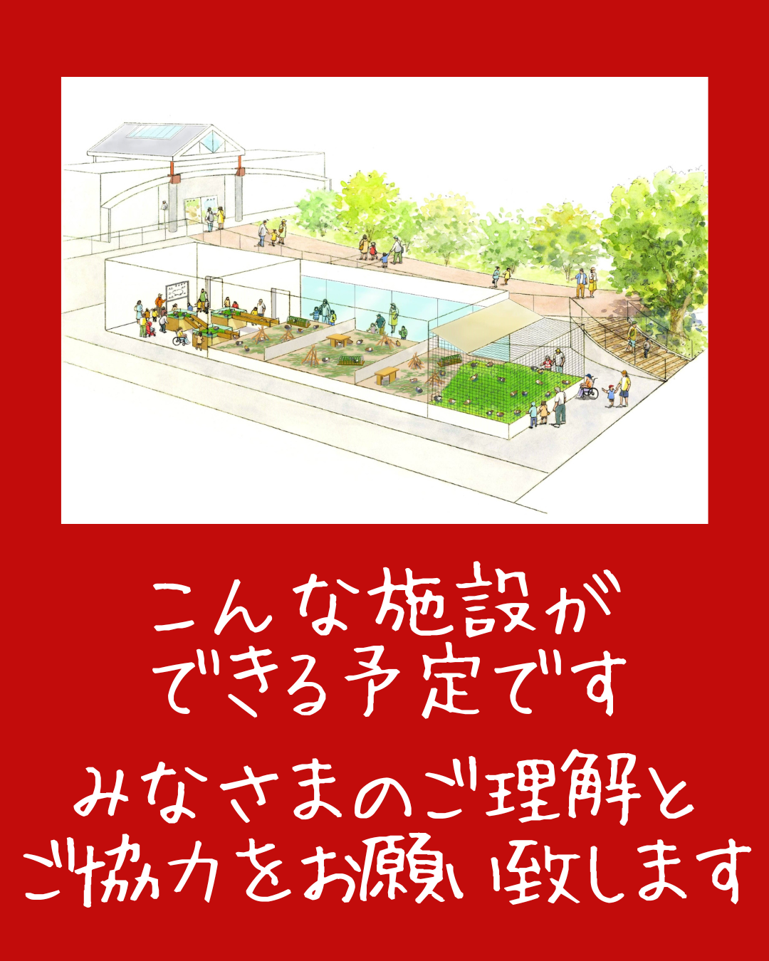 モルモット舎建設工事のお知らせ 2025年10月4日 動物園整備計画に伴い、モルモット舎の建設工事が始まります! それに伴い、園内が一部通行できないようになっております。また、工事中は大きな音がすることもあるかと存じます。 動物にお会い頂くことには、支障はございません。何卒みなさまのご理解ご協力を賜りますよう、よろしくお願い致します